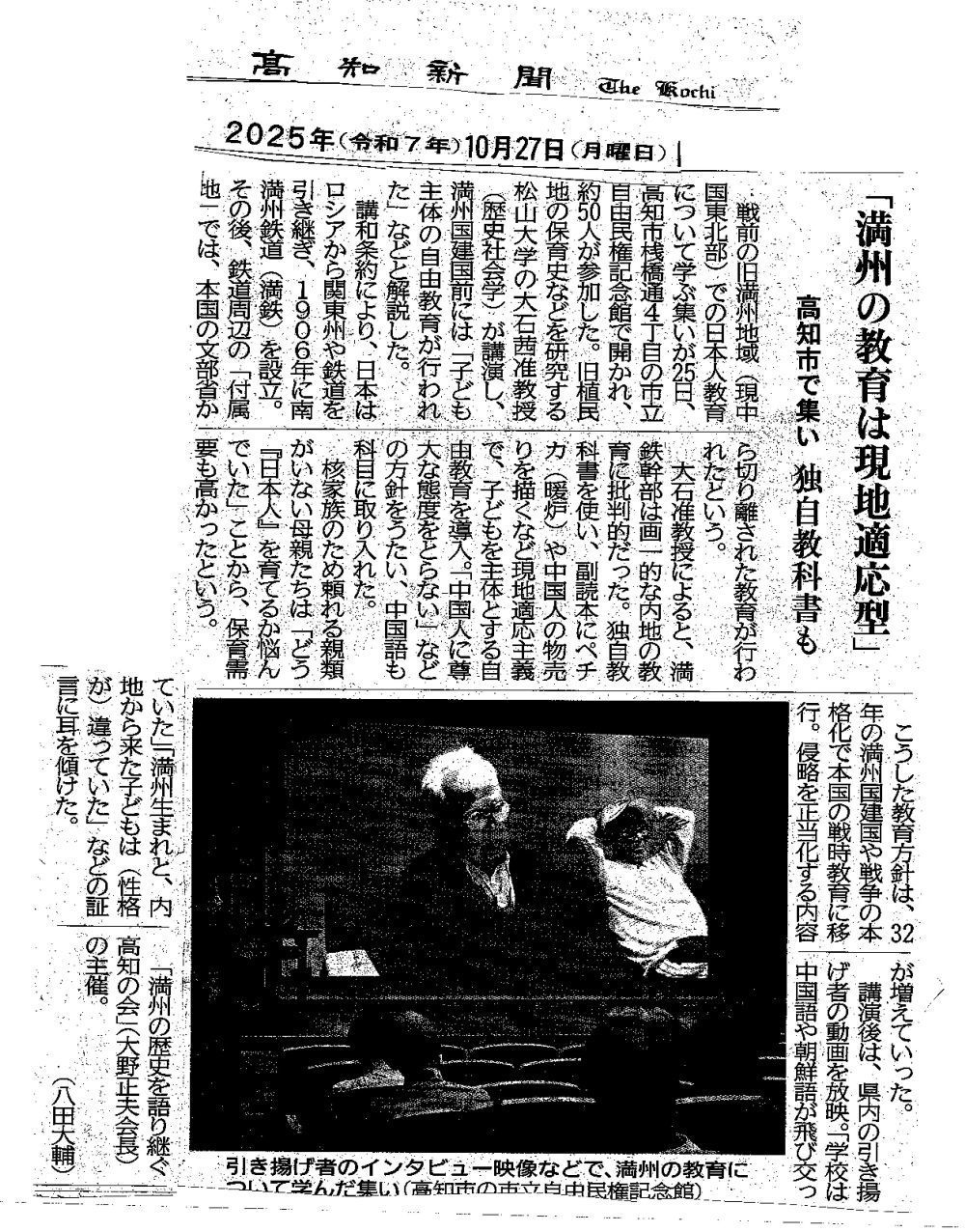 ※2025年10月25日、「満洲の歴史を語り継ぐ会」主催による、満洲時代の教育に関する講演と引き揚げ者からのインタビュー録画上映が高知市立自由民権記念館に於いて行われました。