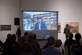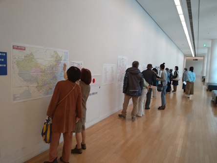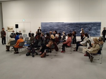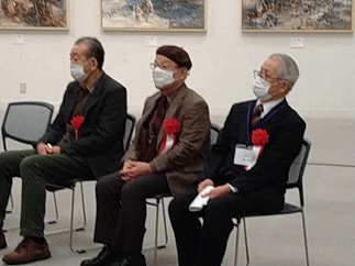 中国人画家、王希奇氏の油絵と墨絵の融合による独特の技法で、引揚げ船に乗る憔悴しきった数百人の姿を描き上げた縦3m、横20mに及ぶ大作が展示された会場で、開催の式典には、多くの参加者がありました。